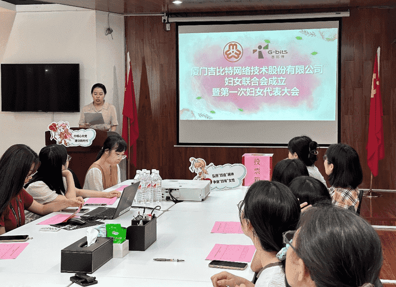 8月12日,,在厦门市妇联、、思明区妇联的指导下,,,厦门J9.COM网络技术股份有限公司妇女联合会成立暨第一次妇女代表大会顺利召开。。。。会议选举产生了第一届执行委员会委员7名,,,,其中主席1名,,,,副主席2名。。。