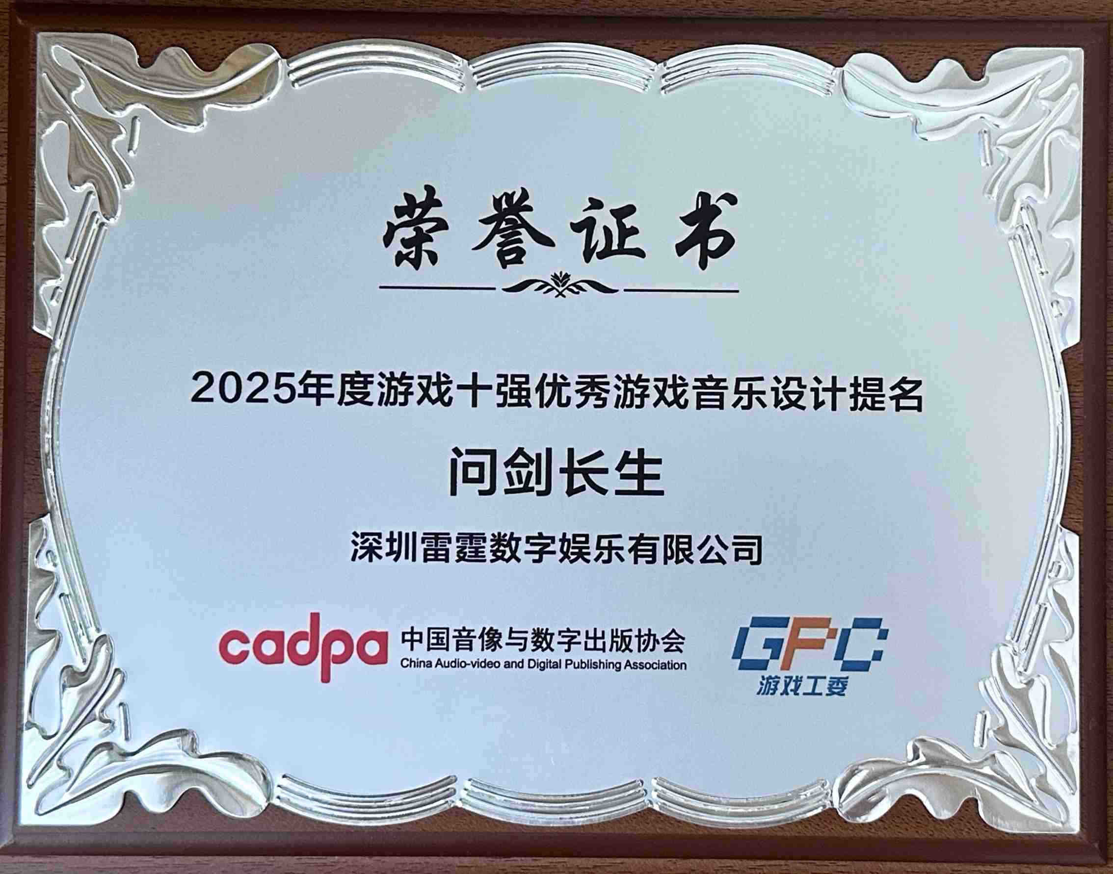 公司坚持走精品化道路,,,,打造与时代精神相契合、、与海内外大众诉求相契合、、、与创作实践相契合的游戏产品,,,,倡导构建具有中华文化特色、、弘扬中华美学精神的产品理念,,切实提升游戏文化内涵的传播力影响力。。。。如此次荣获“2025游戏十强年度优秀游戏音乐设计”提名奖的公司自研产品《问剑长生》以音筑境,,以乐传情,,其音乐融合东方传统韵味与现代审美,,,构建独特听觉世界,,,运用古筝、、笛子、、、箜篌等传统乐器与现代管弦乐,,,,塑造灵动古风仙侠氛围。。