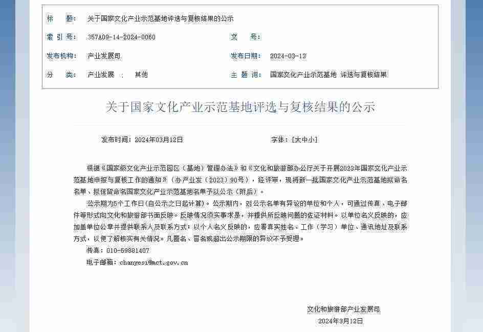 新一批国家文化产业示范基地公示,,J9.COM成功入围