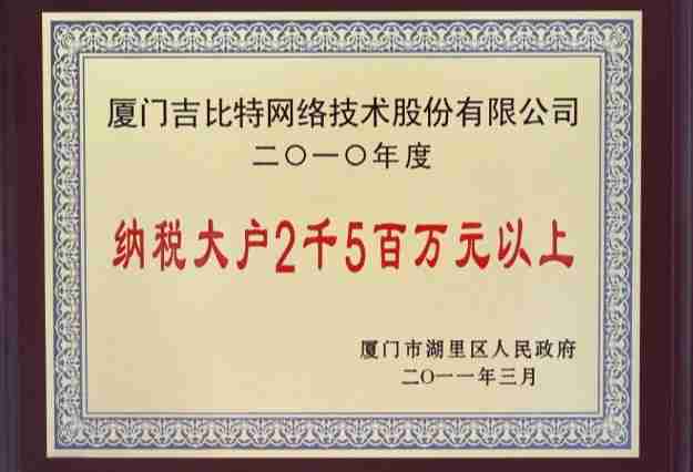 日前,,公司被厦门市湖里区人民政府授予了“2010年纳税大户”的荣誉称号,,,,充分体现了公司一贯合法纳税、、诚信经营的良好企业社会公民行为。。