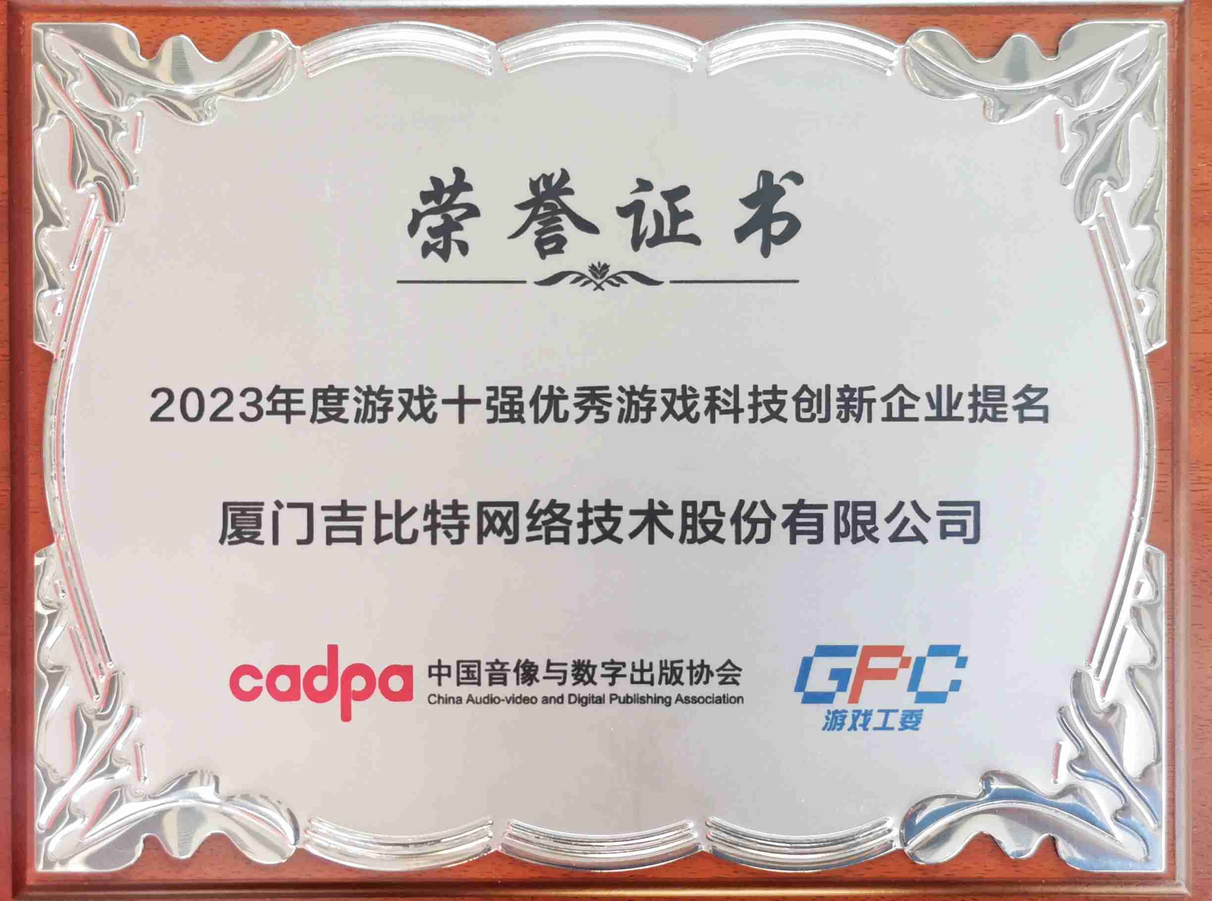12月14日,,,,由中国音像与数字出版协会主办,,中国音数协游戏工委、、、中国游戏产业研究院承办的“2023游戏十强”评选结果正式发布。。“游戏十强”在我国游戏产业界享有“中国第九艺术封神榜”美誉,,,,其评选秉承公开、、公平、、、、公正的原则,,,,因其代表性、、、影响力、、、公信力被誉为中国游戏产业最高奖项。。。。继2022年度入围后,,,J9.COM今年再次获得“优秀游戏科技创新企业”提名,,研发创新实力获得肯定。。。。